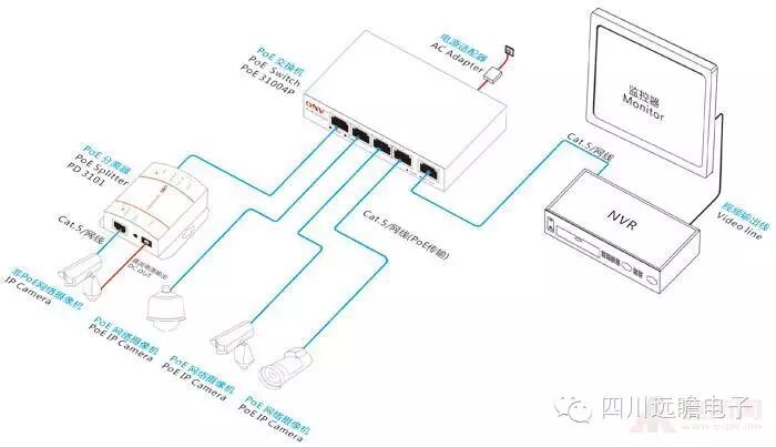 随着以太网的广泛应用,目前全球均普遍采用RJ-45网络插座,因此各种PoE设备都具备相容性。PoE不需要更改以太网线路的缆线架构即可运作,所以采用PoE系统不但节省成本易于布线安装还具备了远程通电、断电的能力,从而很好的解决了网络摄像机所需的电源难题,将在未来安防监控领域的发展中起到非常重要的作用。