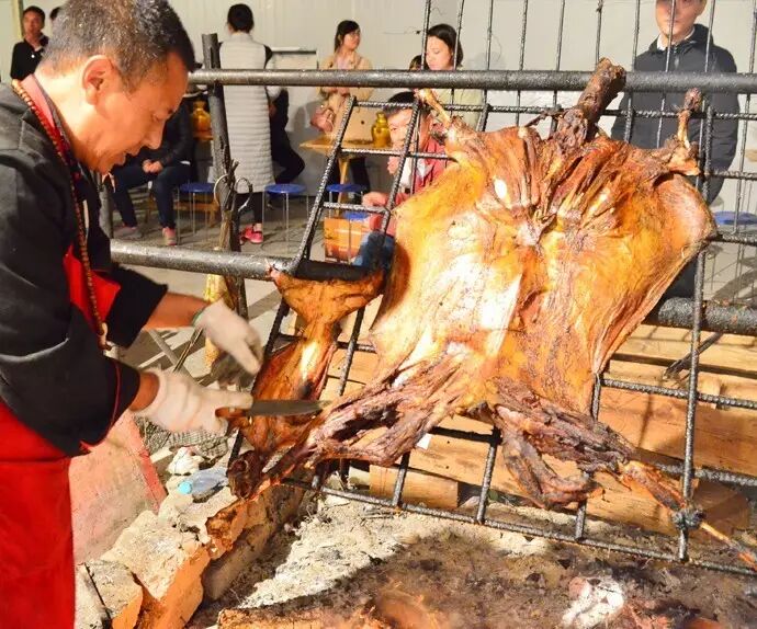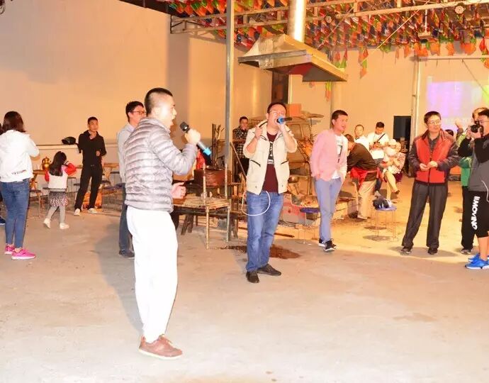 大家热情高涨,气氛不断升级,欢呼声、嬉笑声充满了整个晚会现场;熊熊的篝火尽情燃烧着大家的热情,欢乐与歌声伴着火苗一起跳动,大家大口吃着烤羊肉,大口喝酒,把晚会推向了一个又一个高潮!