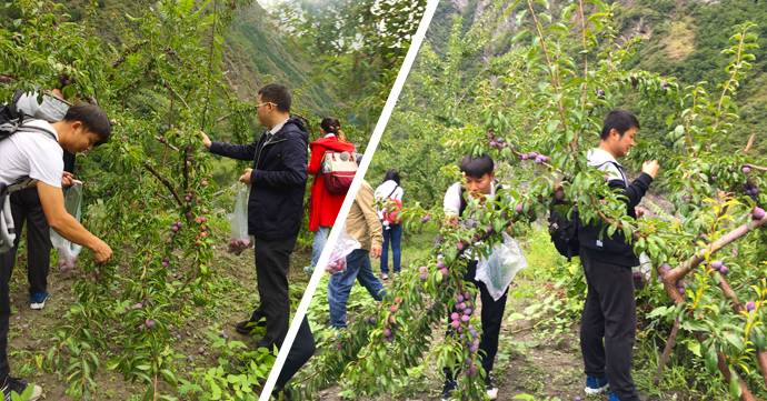 在理县,既有风景秀丽的自然生态景观,又有体现羌族、藏族文化的人文景观,更有每季都有的各种丰富的水果。午饭后,大家突然发现一片红彤彤的脆红李,甘甜、硕大、美味,一时兴起,与果农商量自己动手现摘李子。