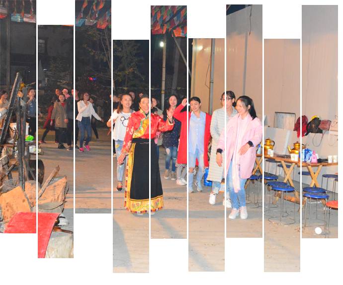晚饭后,在轻松欢快的藏族音乐声中,大家跟着穿着民族服装的藏族姑娘载歌载舞,为热闹的 篝火晚会 拉开了帷幕。