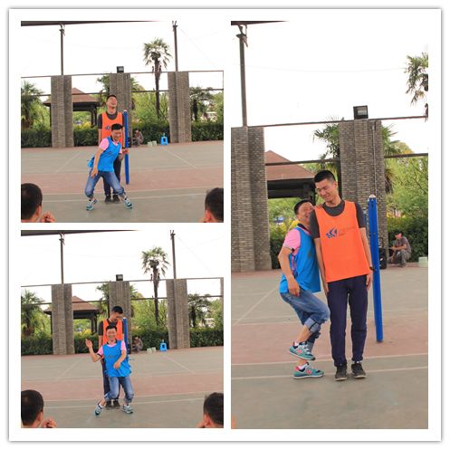 蓝色队服的是高峰队,队伍口号是“激励前行,勇攀高峰”!