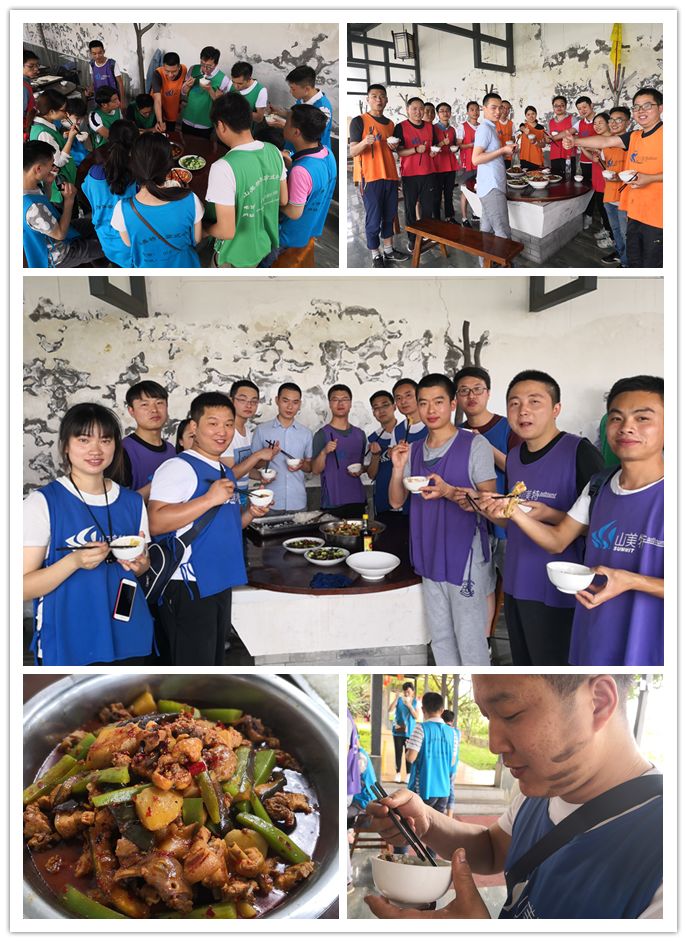 和往年不同的是,这次的午餐是自己动手做,大土灶,柴火鸡,新鲜的蔬菜,大伙齐动手,洗的洗,切的切,生火、炒菜……人多力量大,半小时左右,香喷喷的饭菜就上桌了,看大家这狼吞虎咽的架势,就知道味道不是盖的!
