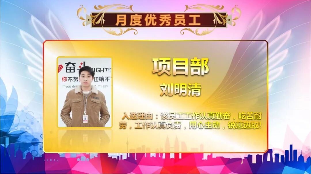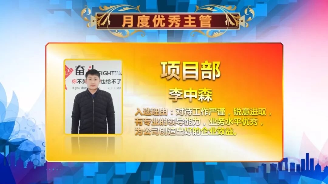 而总会有员工表现特别优秀! 他们愿意付出了比别人更多的艰辛和汗水,他们没有豪言壮语,他们没有丰功伟绩, 但他们用行动,告诉了我们什么是主人翁精神。