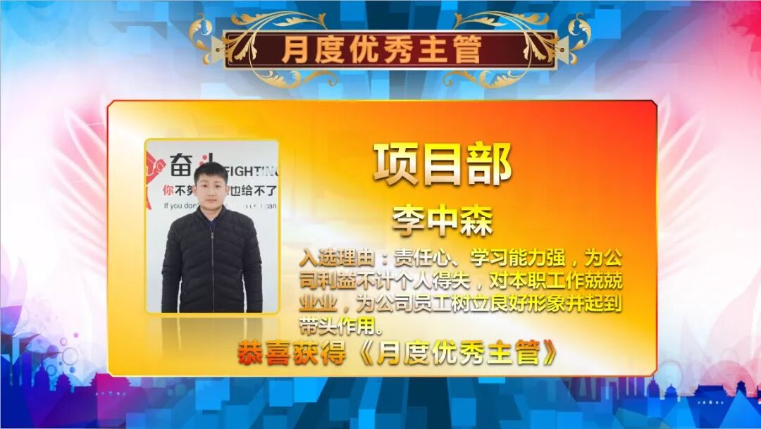先进的集体、优秀的个人,是我们远瞻发展的中坚和基石。一月一次的评选不是目的,意义在于用榜样的作用鞭策和带动大家同心同德、齐心协力地把各项工作和客户服务做好!人心齐,泰山移,接下来的工作中希望伙伴们继续相互勉励,挑战自我,拼搏向上!