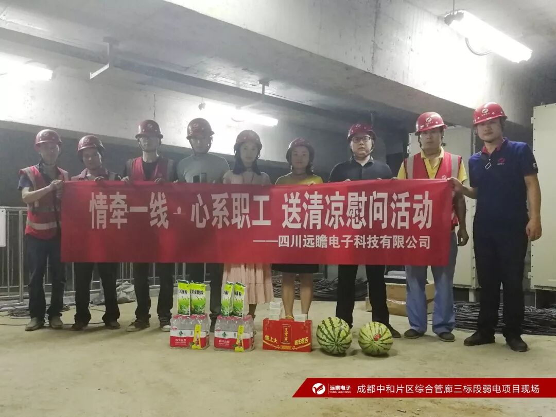 2019年8月29日,公司总经理在一行领导的陪同下,顶着夏日的炎热,相继走访“成都市质量监督管理局弱电项目”、“中和综合管廊三标项目”,为坚守在工地的一线职工送去了企业的关怀和清凉。