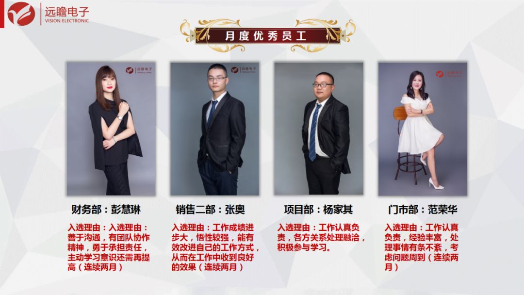热烈祝贺在本次会议中荣获“优秀主管”、“优秀员工”称号的小伙伴,你们在工作中认真负责,有较高的职业素养及考虑问题周到,处理事情有条不紊的态度,为全体员工树立了良好的榜样。愿你们在接下来的工作中不断的努力进取,为公司的发展做出更大贡献。