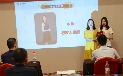 本次半年度总结会议,以公司的各项绩效考核指标为依据,分别从后勤类和业务类两个板块,颁发了”优秀团队“、”特别项献“、”最佳管理“、”最佳新人“、”销售新人“等9个奖项及奖品,同时针对入职公司10年的员工,颁发了”十年风雨同舟“特别奖。获奖的人员用他们的实际行动给在场的所有员工树立了最好的榜样,极大的鼓舞了大家的士气,把会议推向了高潮!