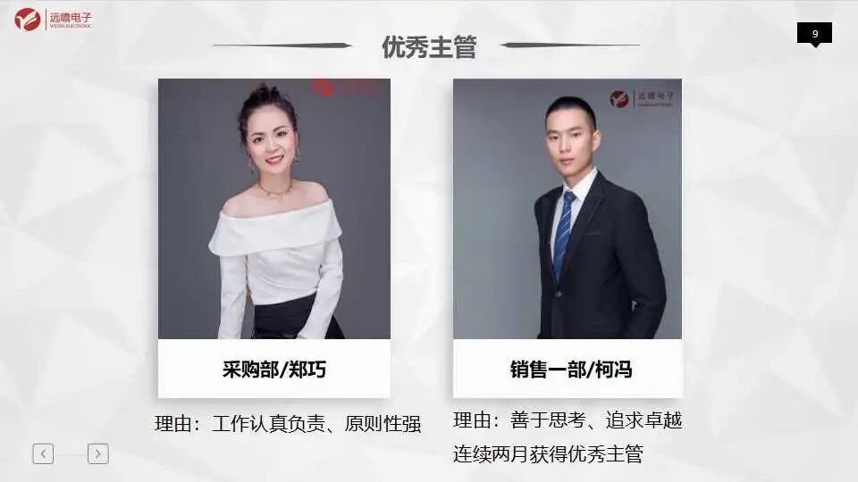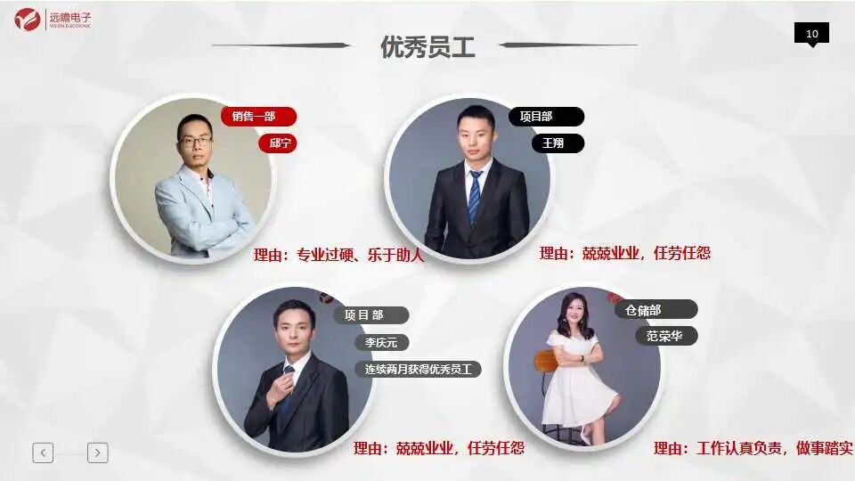 恭喜在本次员工大会中荣获“优秀主管”、“优秀员工”称号的各位同伴。你们在工作中拥有高效的执行力,能够与团队一起吃苦耐劳,执行各项工作时认真仔细、善于思考,为全体员工树立了良好的榜样。愿你们在接下来的工作中不断的努力进取,为公司的发展做出更大贡献。